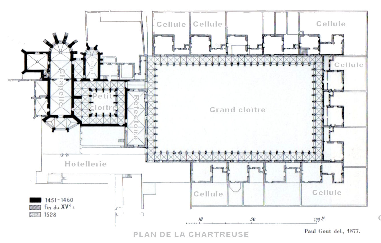 L’ensemble se compose du grand cloître (contre lequel s’élevaient autrefois les ermitages et qui enserre le cimetière), du petit cloître (chef d’oeuvre de l’art Gothique flamboyant), de la chapelle (avec son porche polygonal, les tombeaux des fondateurs et stalles sculptées du 15e siècle), du vestibule, de la salle capitulaire, du réfectoire (doté d’une très belle chaire du lecteur) et du jardin.